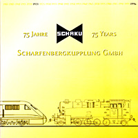 Schaku. 75 Jahre Scharfenbergkupplung Gmbh. Door de firma Scharfenbergkupplung uitgegeven boekje ter gelegenheid van het 75-jarig bestaan in 1996. Tweetalig (Duits en Engels). Tegenwoordig heet het bedrijf Voith (www.voith.com). |