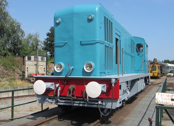 Beekbergen, 6 juli 2013. Achtung! Schritt fahren. Loc 2412 poseert op de draaischijf. In de zomer van 2013 is ze bij de VSM weer in de oorspronkelijke blauwe kleur geschilderd. Foto Dolf Dijkstra. |