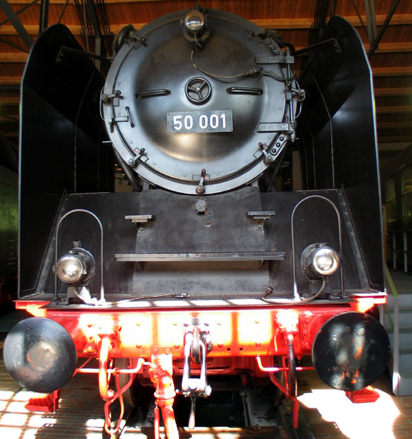 Berlijn, 25 augustus 2009. Loc 50 001 in het Deutsches Technikmuseum. Ze heeft haar oorspronkelijke windleiplaten ("grote oren") teruggekregen. De loc is bewaard gebleven dankzij een particulier die ook loc 01 1082 heeft gered. |