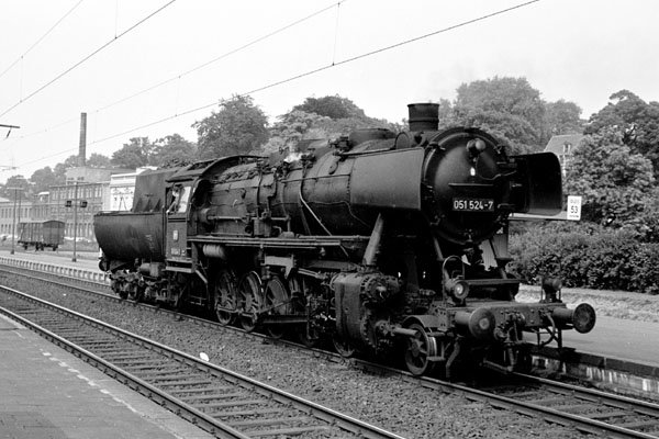 Aachen Hbf, 4 augustus 1970. Enige blikken op de stokerszijde van loc 051 524. |