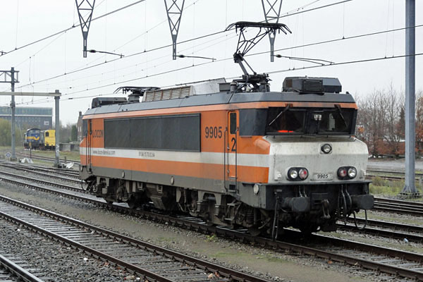 Apeldoorn, 23 november 2012. Locon 9905, in 1982 op de baan verschenen als NS 1636, later 1836, met het stadswapen van Heerenveen. In 2011 is de loc overgegaan naar Locon Benelux, die er onder andere vuiltreinen mee rijdt. |