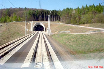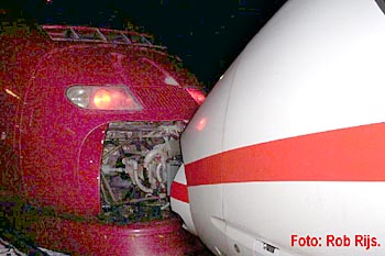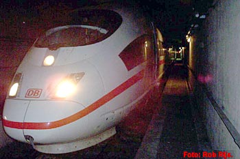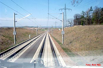 | Op 25 juli 2005 maakte een machinist deze twee foto's vanuit zijn cabine. Op de eerste foto een Thalys bij Geldermalsen, op weg naar Parijs. Wegens uitgelopen werkzaamheden werd deze trein omgeleid. Op de tweede foto een ICE op weg naar Duitsland, in de boog bij Breukelen. |