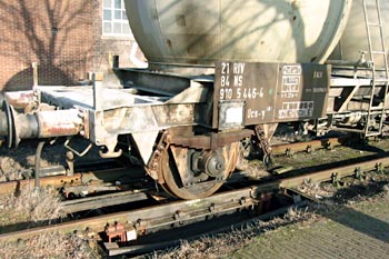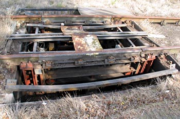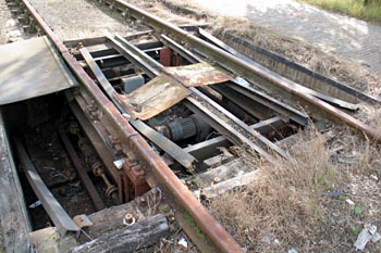 Amersfoort, 11 september 2004. Bij de voormalige wagenwerkplaats is deze inrichting te zien waarmee de asdruk van goederenwagens werd gemeten. Er hoorde ook een meethuisje bij, maar dat is gesloopt. |