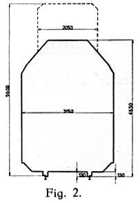 Het vrije ruimte profiel is de grenslijn, waarbinnen geen kunstwerken gebouwd mogen worden. Het is voor normaalspoor 4 meter breed. De afstand der sporen op dubbelsporige baanvakken bedraagt echter in vele gevallen slechts 3,6 m, soms 3,5 m. Het omgrenzingsprofiel is de grenslijn, waarbuiten geen enkel onderdeel van het rollend materieel mag uitsteken. Voor de N.S. lijnen geldt als omgrenzingsprofiel het profiel volgens fig. 2. Het bovenste gestippelde deel geldt voor de stroomafnemers van het elektrische materieel. |