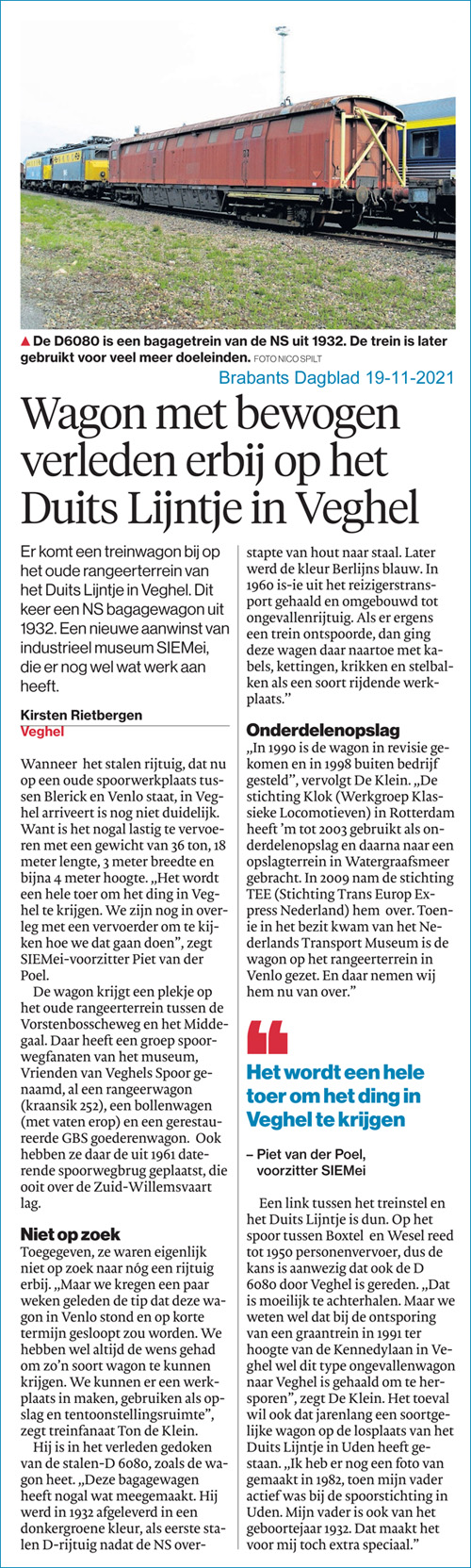 Artikel in het Brabants Dagblad van 19 november 2021, met een foto van mij.