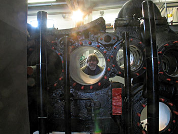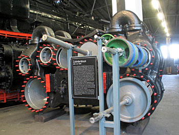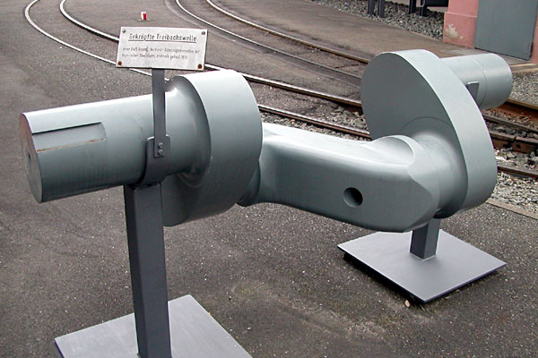 Neuenmarkt-Wirsberg, 17 augustus 2005. Imposante drijfas van een Beierse goederenloc (G 4/5, later Baureihe 56.8-11), net als de S 3/6 een viercilinder compoundlocomotief. De knikken in deze as zijn nodig in verband met het drijfwerk van de twee binnenliggende cilinders. |