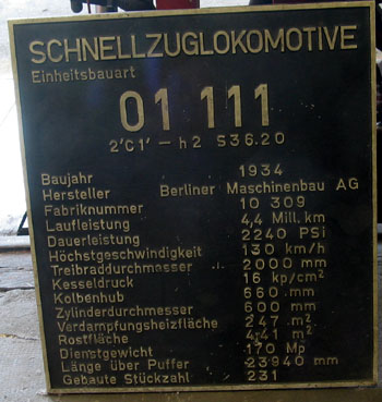 Neuenmarkt-Wirsberg, 17 augustus 2005. Fabrieksplaat van loc 01 111. |