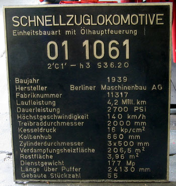 Neuenmarkt-Wirsberg, 17 augustus 2005. Fabrieksplaat van loc 01 1061 (012 061). |