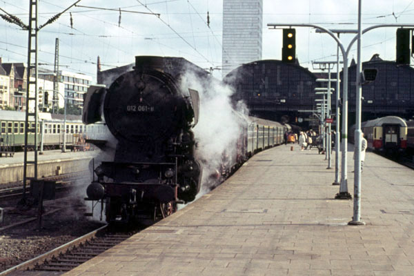 Hamburg Altona, 15 juli 1971. Loc 012 061 vertrekt met een trein naar Kiel. |