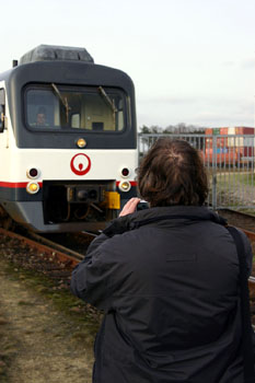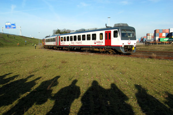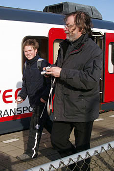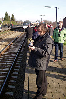 Afscheid WadlopersDe NVBS organiseerde op zaterdag 26 januari 2008 een afscheidsrit met Wadlopers op de Maaslijn. Het programma bestond uit een rit van Nijmegen naar Roermond en terug, met onderweg enkele fotostops. Volgens mij beleefden de 170 deelnemers (en een aantal achtervolgers) een geslaagde dag, mede dankzij de inzet van Veolia. Ook was er weer volop gelegenheid tot het meedingen naar de Spot the Webmaster Award! |