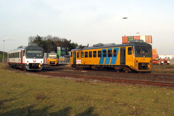 Tegelen, 26 januari 2008. GTW 351 van Veolia passeert de excursietrein van de NVBS, bestaande uit DH-stellen 3226, 3111 en 3105. |