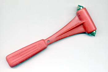Volgens mij is er een eenvoudige oplossing voor dit probleem: combineer het hamertje met de noodrem, zodanig dat het hamertje alleen gepakt kan worden nadat er aan de noodremhandel getrokken is. Dat zou bijvoorbeeld kunnen gebeuren door het stangetje van de noodremhandel te vervangen door een exemplaar met een inkeping waarin het hamertje geklemd kan worden. Die inkeping wordt dan, als de noodrem zich in de normale positie bevindt, afgedekt door een metalen plaatje. Er is vast wel een handige metaalbewerker die zoiets kan maken. Ik werk niet bij de NS, maar laat u zich er niet van weerhouden om mij te gedenken als bovenbeschreven idee u wat lijkt. Brief van 7 december 1988. Ik kreeg een vriendelijke brief terug waarin stond dat mijn idee niet zou worden uitgevoerd. Inmiddels zijn de noodhamertjes nog veel zeldzamer geworden. Do888 staat voor Dienstorder nummer 888, waarmee de NS-directie de ideeënbus van start liet gaan. Zie ook het thema Veiligheid. |