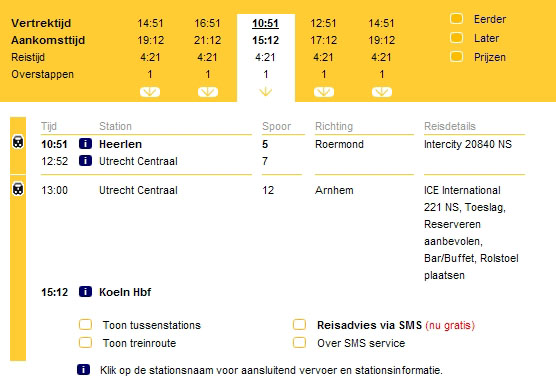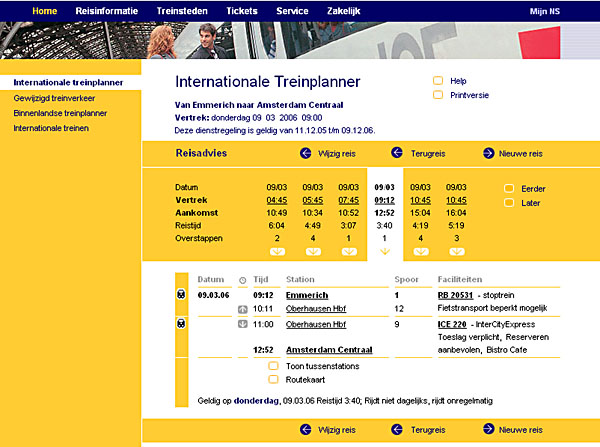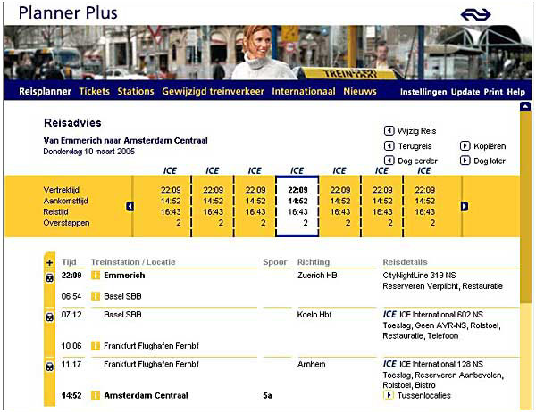 De reisplanner anno 2005. Van Emmerich naar Amsterdam per trein. |