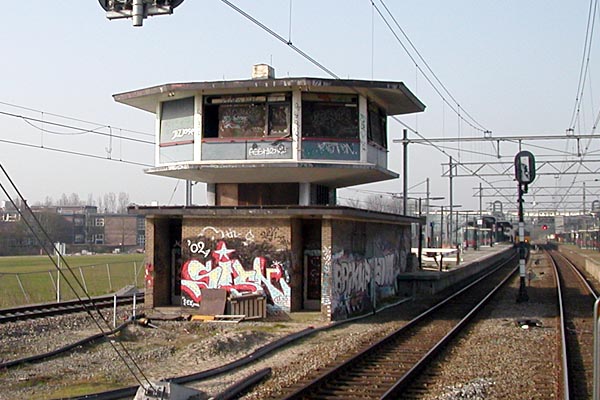 Overvecht. Inmiddels zijn er diverse sporen en fly-overs bijgekomen, en is het seinhuis niet meer in dienst;