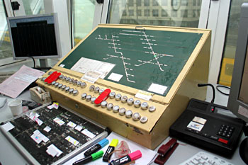 De spoorbezetting wordt met de hand bijgehouden, op de kaartjes