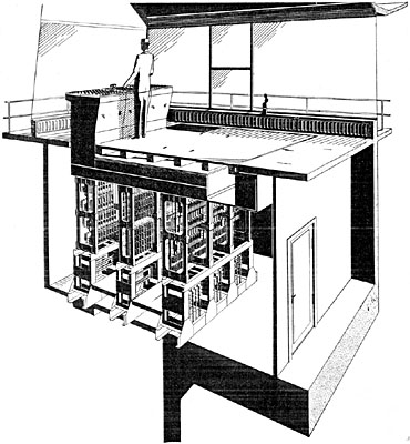 Jan-Willem Sorber. Rechts op een tekening uit 1939. De post bezat een zevenrijig stelknoptoestel voor 168