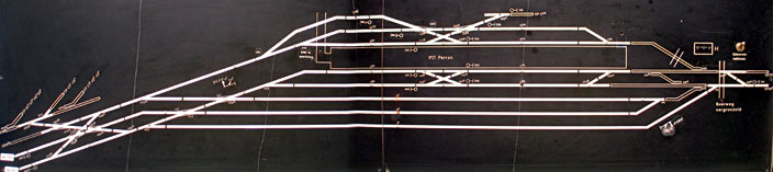 is de beweegbare bovenleiding. Helemaal links op het tableau de sporen naar Utrecht