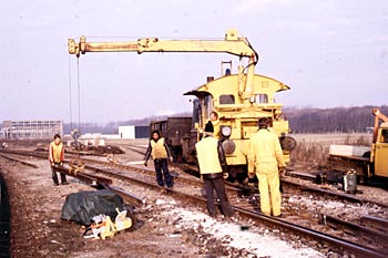 John Hogaarts is vroeger locomotorbestuurder geweest. Hij stuurde me deze foto van Sik 246 in actie met Hiabkraan, op het terrein van de Hoogovens, omstreeks 1982. |