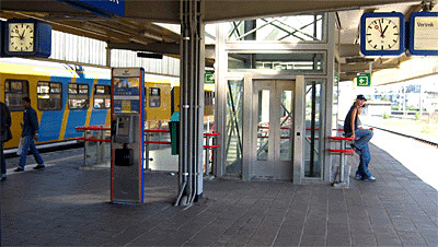 Zomertijd, wintertijdWie weleens naar een stationsklok heeft gekeken, zal hebben gezien dat de secondenwijzer iets te snel ronddraait. Na zo’n 58 seconden blijft ze even stilstaan, in afwachting van een elektrische puls om een nieuw rondje te gaan draaien. Op dat moment verspringt ook de minutenwijzer een streepje. Dat signaal is afkomstig van een ‘moederklok’. Vroeger was dat een echte klok die in Utrecht en andere grote stations stond. Tegenwoordig wordt gebruik gemaakt van een dienst van de KPN, die pulsen via de telefoonlijn verstuurt. Inmiddels zijn er ook andere systemen in opkomst. Op deze manier wordt ervoor gezorgd dat alle stationsklokken in het land altijd precies gelijk lopen. Het is ook eenvoudig om ze allemaal tegelijk een uur vooruit te zetten: dan worden er kort achter elkaar zestig pulsen verstuurd. Bij de overgang van winter- naar zomertijd gaan de stationsklokken vanaf 2 uur ‘s nachts sneller draaien tot ze 3 uur aangeven. Bij de overgang van zomer- naar wintertijd lopen de klokken door tot 3 uur en draaien daarna snel verder tot ze 2 uur aangeven (vroeger bleven ze om 2 uur een uur lang stilstaan). |