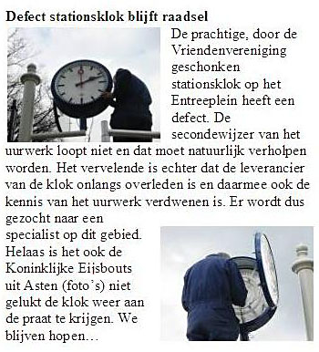 Het probleem is inmiddels opgelost. Besloten is om een nieuw uurwerk in te bouwen. (april 2006) |