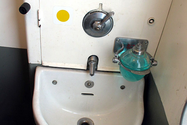 Deze foto is op 28 augustus 2004 gemaakt in treinstel 273. De werking van de waterkraan is hierboven beschreven. |