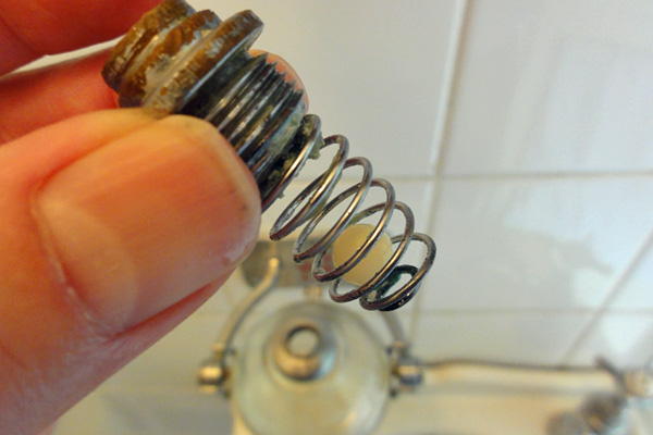 Bunnik, 28 november 2010. Zeepdispenser uit de jaren vijftig of ouder. Hier was ik al lang naar op zoek, om ons designfonteintje in de wc te completeren. Er hoort eigenlijk groene zeep in, maar die hadden we even niet in huis. |