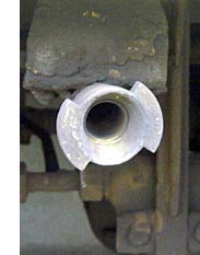 Bij deze constructie, waarbij de reservoirs in het dak zijn aangebracht. wordt nog wel eens last ondervonden van bevriezen. Bij strenge vorst moeten de reservoirs dan ook afgetapt worden. Om dit euvel te bestrijden, worden de laatste tijd de reservoirs onder de vloer van het rijtuig aangebracht. Een klein verwarmingselement en een goede isolatie beschermen het reservoir tegen de vorst. Het water wordt door luchtdruk naar de kraan geperst. Het voordeel van dit systeem, waarbij eveneens telkens slechts een beperkte hoeveelheid water wegstroomt, is, dat de leidingen niet steeds gevuld zijn met water en dus niet kunnen bevriezen. Tekst: Spoorwegtechniek, het rollend materieel. Uitgegeven door de opleidingsschool van de Dienst van Exploitatie, 1943. Foto: vulmond voor waterreservoir, internationaal gestandaardiseerd (foto Dennis Revier). |