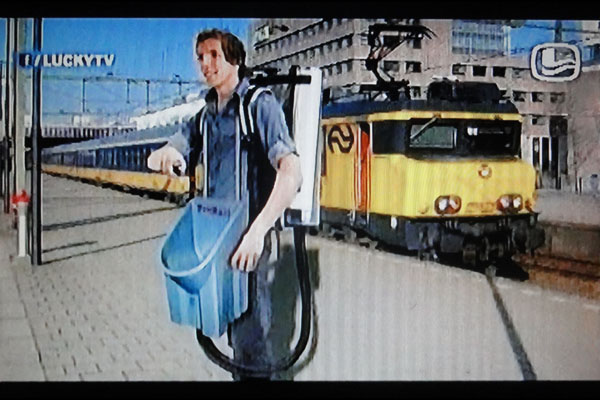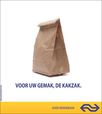 Na alle ophef in oktober 2011 kon ik er niet onderuit om aandacht te besteden aan de plaszak, de noodvoorziening die men aan de inventaris van wc-loze treinen wil toevoegen voor het geval reizigers urenlang in een gestrande trein opgesloten worden, in plaats van ze een paar honderd meter naar het dichtstbijzijnde station te laten lopen. Waar dan vaak ook geen toilet aanwezig is, of zo'n automatische cabine waar je alleen met een munt van 50 cent in kunt en die tussen twee bezoekers door vijf minuten bezig is, zodat je kunt uitrekenen hoe lang het duurt als tien mensen tegelijk naar de wc willen. Kortom de plaszak, waar natuurlijk ook variaties op zijn bedacht zoals de kakzak (www.godisadrunk.com) en het mobiele urinoir van ProRail (www.luckytv.nl). Je kunt de plaszak (TravelJohn) ook gewoon zelf kopen, dan ben je niet afhankelijk van treinpersoneel. Ongeveer 6 euro per drie stuks. |