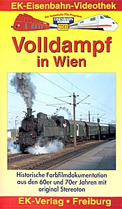 Volldampf in Wien. EK-Eisenbahn-Videothek. 50 minuten kleuropnamen met stereogeluid, samengesteld uit de super-8-films die Dipl.-Ing. E. Saßmann vanaf 1968 in Wenen en omgeving heeft gemaakt. Op 29 mei 1976 was het afgelopen met stoom in Wenen. Die Baureihe 12. EK-Eisenbahn-Videothek, 1994. Speelduur 60 minuten. Deze loc met vier drijfassen gold in de jaren dertig als "Die stärkste Schnellzugdampflok in Europa". De dertien locs waren eerst genummerd in de Reihe 214, na de Anschluss met Duitsland in de Baureihe 12. Loc 12.10 is bewaard gebleven maar is niet bedrijfsvaardig. Een andere loc is overgenomen uit Roemenië (waar 79 soortgelijke locomotieven zijn gebouwd) en heeft het nummer 12.14 gekregen. Deze loc is wel bedrijfsvaardig en speelt een hoofdrol in deze film. |