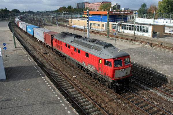 Rotterdam, 12 oktober 2007. Loc 232 903 nadert het station met een containertrein.
