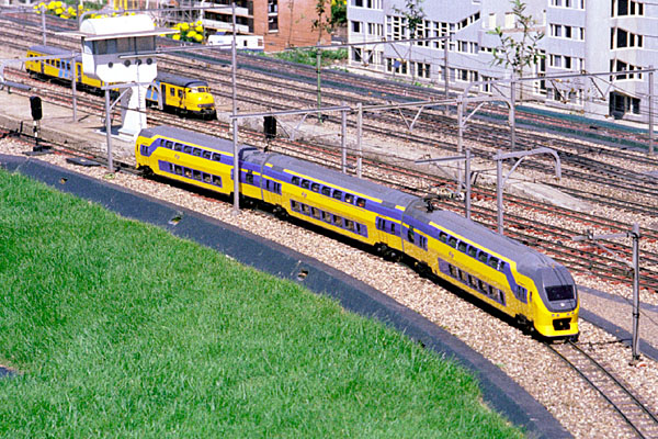 Madurodam, 22 augustus 1996. Net als in het echt hebben de Regiorunners hier onlangs hun intrede gedaan.