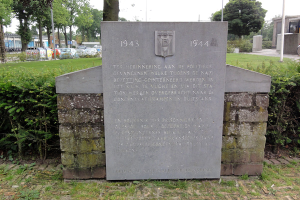 Vught, 11 juli 2014. Monument ter herinnering aan de politieke gevangenen welke tijdens de nazibezetting geďnterneerd werden in het K.L.H. ('Konzentrationslager Herzogenbusch') te Vught en via dit station werden overgebracht naar de concentratiekampen in Duitsland. |
