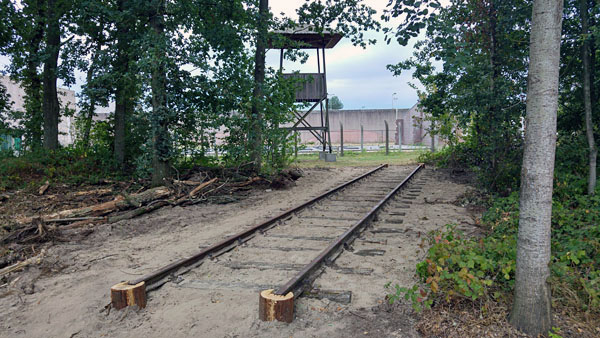 Schuldig landschap Spoorlijn naar Kamp Vught Het spoorlijntje was niet bedoeld voor gevangenenvervoer, het diende vooral voor de aan- en afvoer van vliegtuigwrakken, die gevangenen onder erbarmelijke omstandigheden op het kampterrein moesten demonteren, zodat nog bruikbare onderdelen weer teruggeleverd konden worden aan de Duitse oorlogsindustrie. Voor zover bekend is het lijntje vier keer voor personenvervoer gebruikt, onder meer bij het transport van de 'Philips-joden' naar Auschwitz (na de sluiting van het zogenoemde Philips-kommando) en bij de ontruiming van kamp Vught, op 5 en 6 september 1944. Monument De drie locaties zijn: langs de Loonsebaan tegenover Braserie 155; langs het bospad richting de fusilladeplaats; aan de achterzijde van het Nationaal Monument Kamp Vught. Op de locaties zullen ook panelen met historische foto’s en informatie worden geplaatst. Deze informatiepanelen bevatten verhalen en foto’s over de desbetreffende locatie en de verschillende transporten die hebben plaatsgevonden over het spoor. In de toekomst zal er, ter hoogte van barak 1b (onderdeel van het herinneringscentrum), aan de Lunettenlaan een vierde spoordeel worden gelegd. Het monument, onderdeel van Nationaal Monument Kamp Vught, is op vrijdag 4 november 2016 officieel geopend. - Met dank aan Peter van Kaathoven voor de foto's en informatie. |