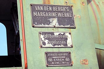Loc 1 in HulshorstDeze 100 pk sterke en 23 ton zware vuurloze loc werd in 1949 gebouwd door Fried. Krupp Lokomotivfabrik in Essen. De loc was van het Krupp-standaardtype Reinsdorf en droeg fabrieksnummer 2298. In maart 1951 werd de loc aan Van den Berg's margarinefabriek in Kleef geleverd. Laatste eigenaar was het Technikmuseum Mühlenhof in Kalkar. In 1997/1998 stond de loc op het terrein van de firma Noordegraaf te Apeldoorn. Van 1999 tot in 2020 heeft de loc in Hulshorst gestaan, vlak naast de spoorlijn bij Hulshorst. Ik ben er twee keer geweest: in 2005 en 2017. De loc staat nu als monument bij de firma MM Paletten in Versmold (Duitsland). |